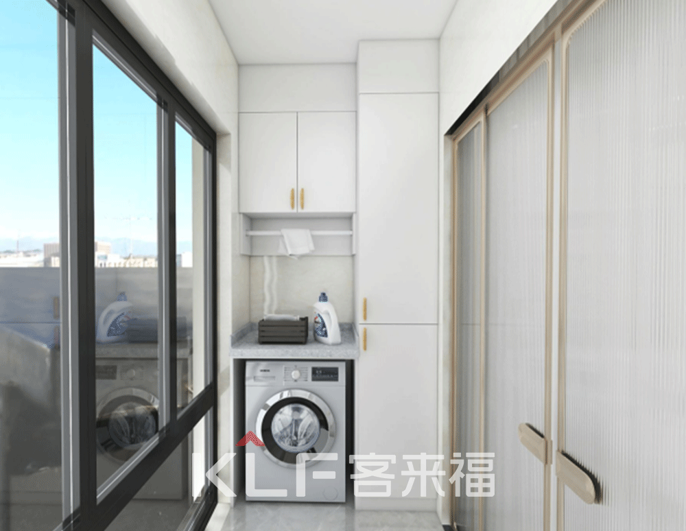 臥室的對面就是書房了,簡單的設(shè)計,讓書房看起來更加的安靜,為屋主人營造出自己的一方小天地。再回過頭來看到的就是陽臺了,我們將洗衣機等物品設(shè)置在了陽臺,使得洗衣曬衣更加的方便,同時也讓千篇一律的陽臺,變得更有自己的特色。
