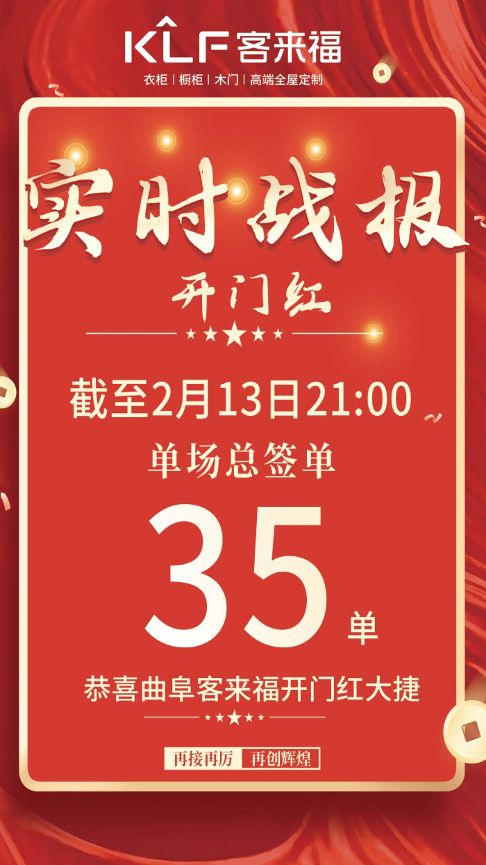 首頁 > 新聞資訊>經(jīng)銷商快報(bào)>開門紅 創(chuàng)佳績 | 曲阜客來福門店累計(jì)簽單35單