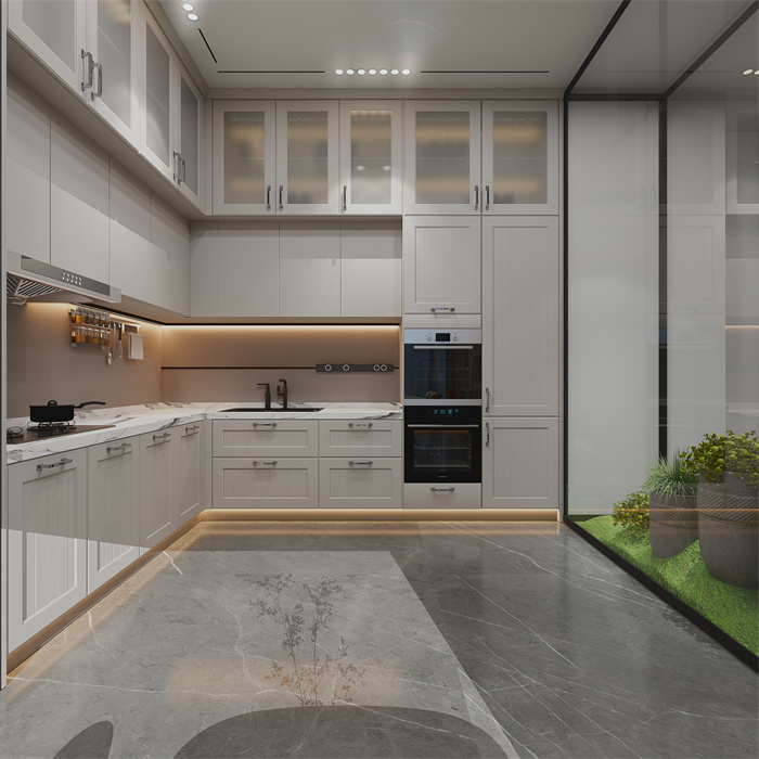 ?個舒適的廚房可以給我們做飯時帶來愉悅感,家里的廚房是反映?活?息的地?。U型的簡潔的動線設(shè)計(jì)和明確的功能區(qū)劃分使得整個烹飪變得有條不紊。 無把?的櫥柜造型簡潔,美觀大氣,其時尚的氣質(zhì)滿?現(xiàn)代年輕?的審美需求。