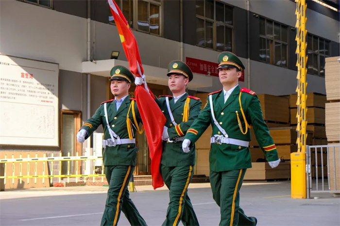 客來福家人們迎著燦爛陽光整齊的排列在場地中央,整齊的隊列、昂揚的士氣,在全場的矚目下,大會拉開帷幕。國旗護衛(wèi)隊昂首挺胸,邁著莊重沉穩(wěn)的步伐,走向升旗臺。