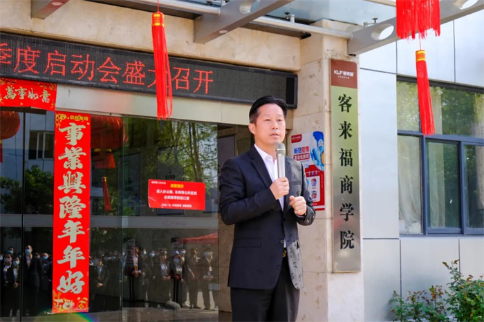 2022年4月6日,客來福第二季度啟動大會在客來福華東生產(chǎn)基地隆重召開!客來福家居股份有限公司創(chuàng)始人尹其宏董事長、魏金華總裁及客來福家居全員共同參與本次啟動大會。