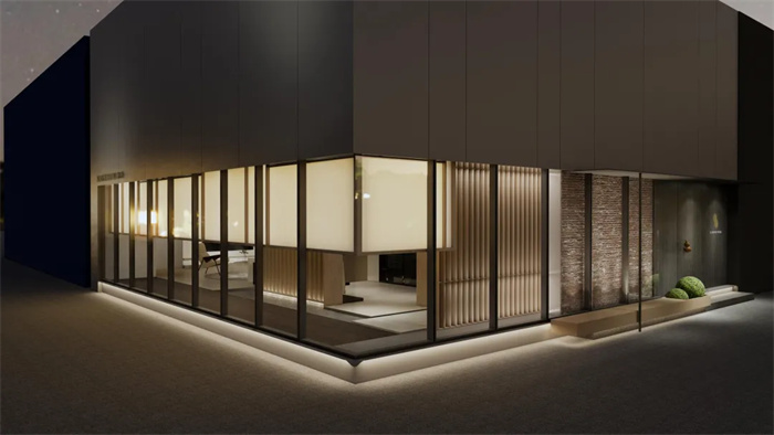 在即將到來的建博會上,革物為大家?guī)淼氖侨谌敫嗳宋那閼押蜁r代精神的東方系列作品。本次展廳共分為四個區(qū)域:洽談區(qū)、木皮產(chǎn)品區(qū)、極簡產(chǎn)品區(qū)、前廳接待區(qū),在展廳中融入拱形墻、外擴圓弧、格柵設計,將中式元素融入景觀中,形成相互交融,彼此和諧共生的綠色新景。