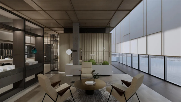 空間中看不見的氣韻是設計追問的本質(zhì)所在,東方意境的抽象文化,用線條和色彩的形式呼應空間,建立秩序感與層次性,展開現(xiàn)代簡奢品質(zhì)生活畫卷中詩意棲居。