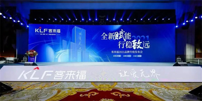 2021年10月11日客來福“全新賦能,行穩(wěn)致遠”品牌升級發(fā)布會在合肥白金漢爵大酒店成功舉行。對外發(fā)布全新的品牌體系,正式啟用工業(yè)4.0和VI識別系統(tǒng),開啟品牌全新發(fā)展的新里程。
