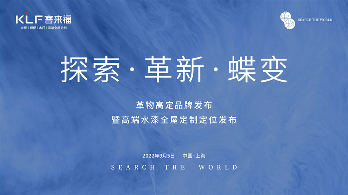 2022年9月5日,客來福·革物高定品牌發(fā)布暨高端水漆全屋定制定位發(fā)布在上海·虹橋—國(guó)際會(huì)展中心5.2A338論壇區(qū)成功舉辦!