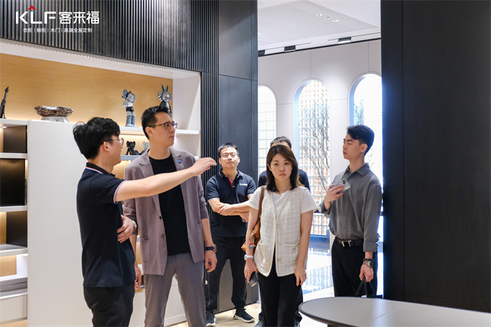 帶領(lǐng)中國建博會(huì)(廣州)團(tuán)隊(duì)首先來到客來福12代展廳,陳總等人在近距離感受客來福產(chǎn)品后,對(duì)其整體呈現(xiàn)效果表示肯定??蛠砀2煌盗醒b修風(fēng)格,都細(xì)致把控品質(zhì)、設(shè)計(jì)、色彩等,只為給受眾滿意的與時(shí)俱進(jìn)的特色產(chǎn)品。