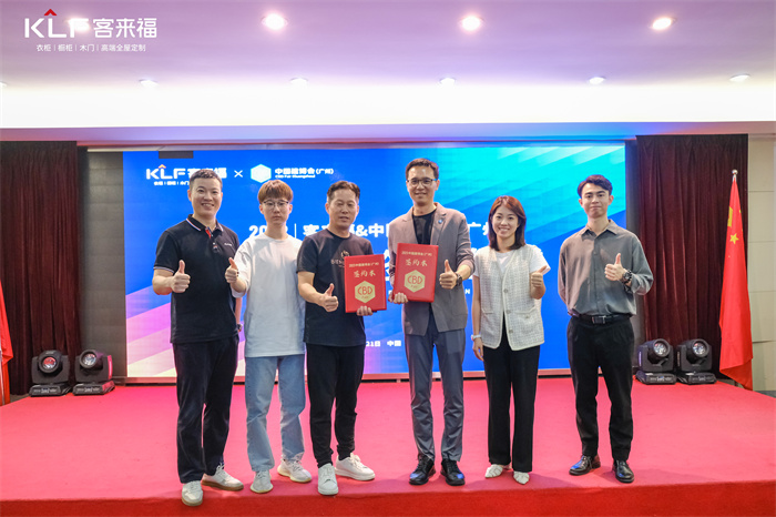 中國建博會(huì)(廣州)展商營(yíng)銷負(fù)責(zé)人陳鵬漢、中國建博會(huì)(廣州)定制家居負(fù)責(zé)人方曉晗、中國建博會(huì)(廣州)何皓楠、客來福家居董事長(zhǎng)尹其宏、客來福營(yíng)銷決策委員會(huì)招商副總童偉、客來福首席品牌官尹邵杰等人參與了儀式。