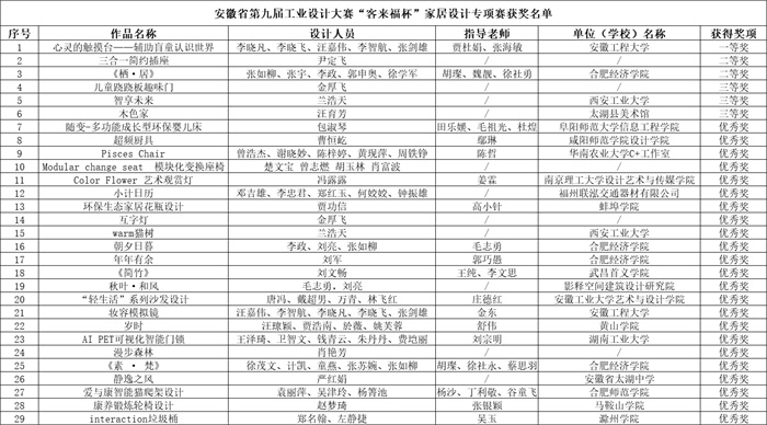 獲獎名單公示丨安徽省第九屆工業(yè)設計大賽“客來福杯”家居設計專項賽