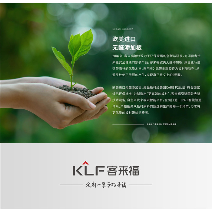 客來(lái)福家居作為國(guó)民品牌,從中國(guó)家庭需求出發(fā),一直潛心研究更環(huán)保的家居材料。客來(lái)福在產(chǎn)品的環(huán)保賽道上一直深耕,相繼推出了歐美無(wú)醛添加板、福芯板等健康產(chǎn)品。