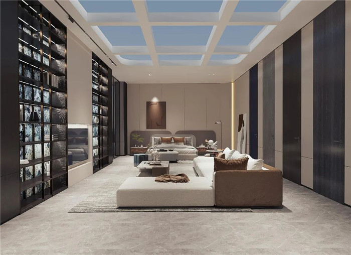 產(chǎn)品囊括了客廳、臥室、餐廳、衣帽間、書房等空間,讓家不僅僅是居住地,更是享受生活的地方??蛷d采用了一柜到頂?shù)娜X框架電視柜,背面搭配云石燈背景,簡(jiǎn)約而不簡(jiǎn)單;衣帽間采用時(shí)尚科技的電動(dòng)平移巴士門,于細(xì)節(jié)之處彰顯魅力;餐廚空間墻面墻板整包,給人舒適溫馨之感;簡(jiǎn)約式懸挑書柜設(shè)計(jì)搭配烤漆工藝超薄帶燈層板,氛圍感十足。