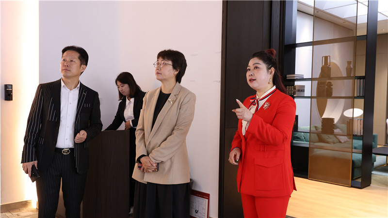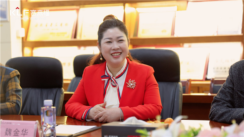 束主席一行走訪客來(lái)?!じ镂锔叨ㄕ箯d、文化長(zhǎng)廊,全方位了解客來(lái)福企業(yè)文化。不管是高顏高品的產(chǎn)品,還是團(tuán)隊(duì)打造、回饋社會(huì)等版塊,可以充分感受到客來(lái)福人蓬勃向上的發(fā)展力。