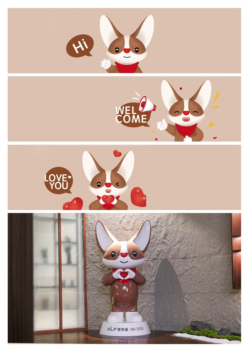 它的名字取自“KLF”的首字母”K“,形象中愛心、^等元素添加設計靈感來源于客來?!熬喸煨腋<揖由?,讓愛無界”的使命,傳遞出客來?!靶腋!钡奈幕砟?。