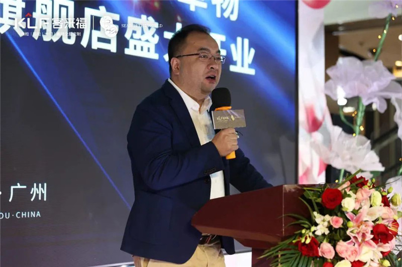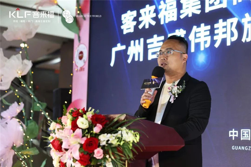 吉盛偉邦總經(jīng)理徐晉烈表示:感謝現(xiàn)場朋友的支持,相信客來福集團(tuán)高定品牌 ·革物·廣州吉盛偉邦旗艦店的開業(yè)將迎來高質(zhì)量發(fā)展。