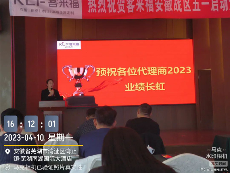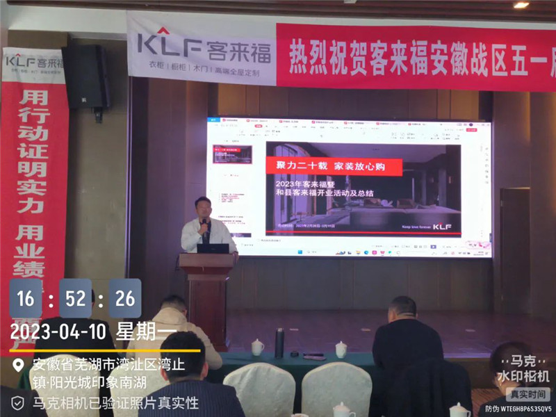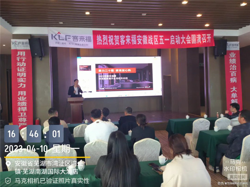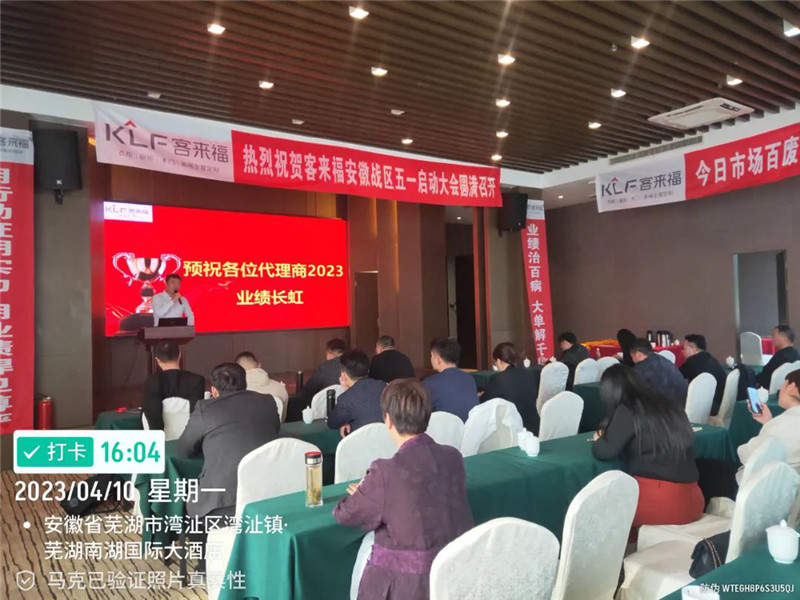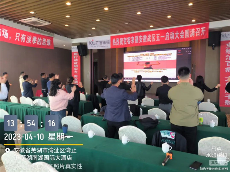 2023年4月10日,客來福安徽戰(zhàn)區(qū)五一啟動大會于蕪湖圓滿召開,安徽戰(zhàn)區(qū)總監(jiān)姚磊與安徽戰(zhàn)區(qū)經(jīng)銷商齊聚本次大會,共同商討五一活動等相關(guān)事宜。