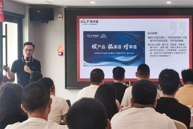 隨后,客來(lái)福運(yùn)營(yíng)團(tuán)隊(duì)人員分別上臺(tái)進(jìn)行渠道政策發(fā)布以及此次920家庭守護(hù)日活動(dòng)的深度講解,通過培訓(xùn)讓經(jīng)銷商家人們?nèi)嬲莆沾舜位顒?dòng)的差異化亮點(diǎn)及升級(jí)后的渠道政策,了解新產(chǎn)品的工藝和品牌優(yōu)勢(shì),增強(qiáng)經(jīng)銷商家人們的品牌自信和營(yíng)銷自信。