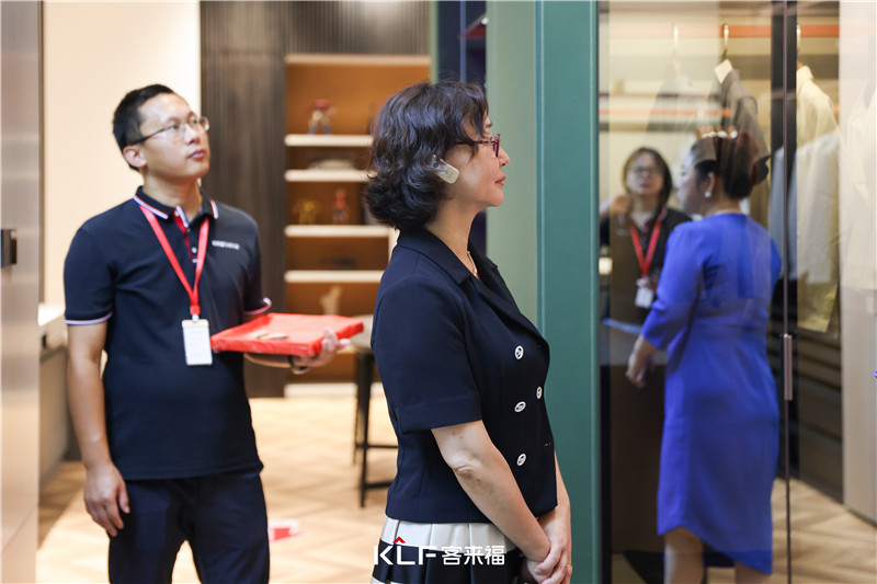 隨后一行人走進(jìn)展廳親看客來(lái)福的高定產(chǎn)品,其整體與細(xì)節(jié)的把控,體現(xiàn)出客來(lái)福的研發(fā)創(chuàng)新力。