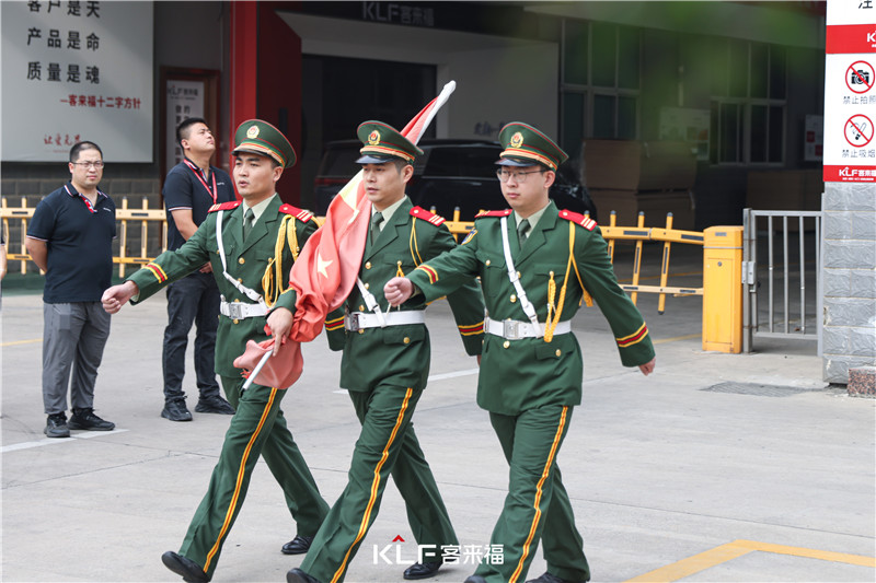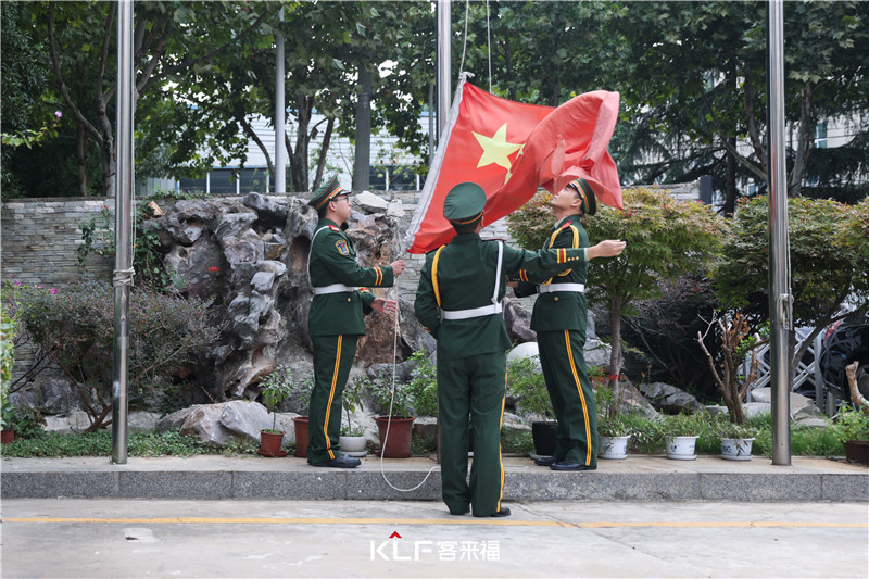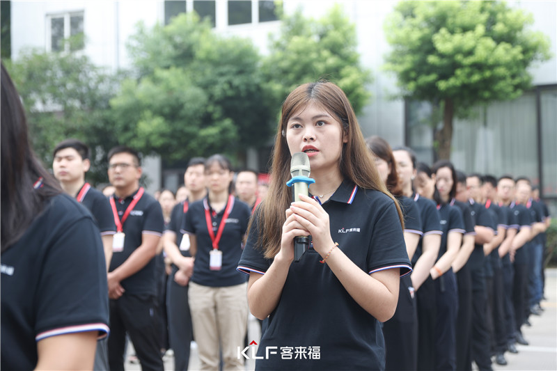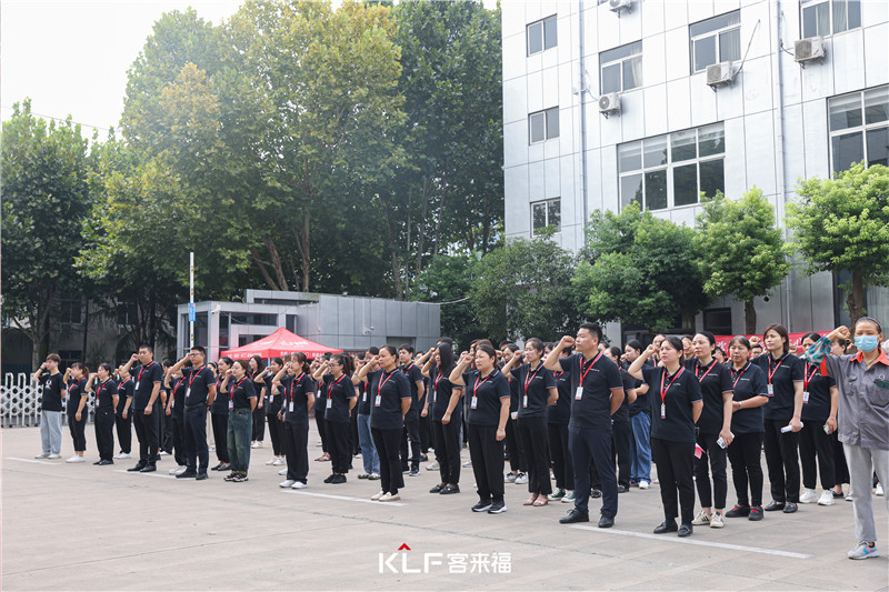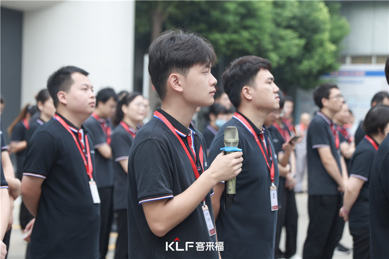 整隊(duì)后,客來(lái)福全體人員進(jìn)行企業(yè)文化宣誓,洪亮的聲音展現(xiàn)著全體客來(lái)福人的昂揚(yáng)斗志。大會(huì)第一項(xiàng),升國(guó)旗奏國(guó)歌,全體員工行注目禮。