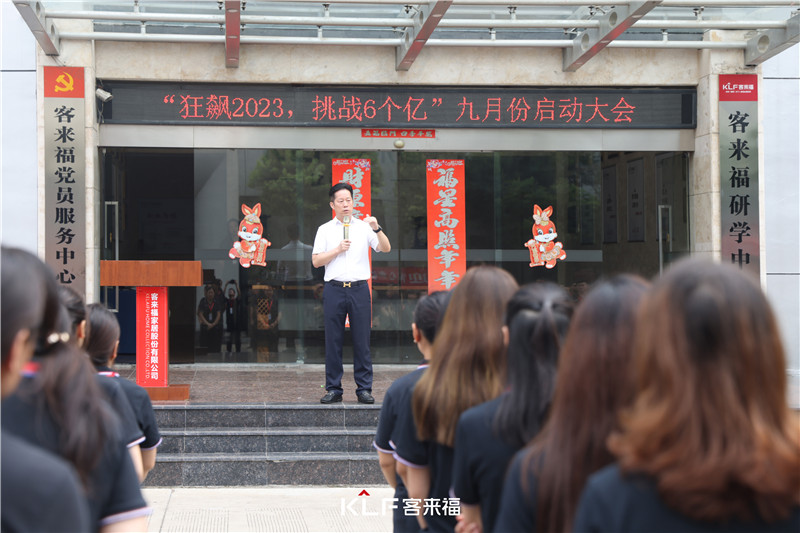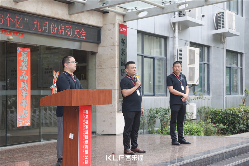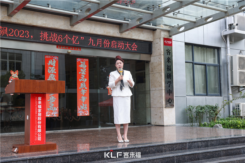 2023年9月4日上午,客來(lái)福家居9月啟動(dòng)大會(huì)于華東瑤海生產(chǎn)基地隆重召開(kāi),客來(lái)福家居股份有限公司董事長(zhǎng)尹其宏、總裁魏金華及全體客來(lái)福家人共同參與。
