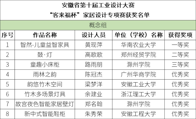 獲獎名單公示 | 安徽省第十屆工業(yè)設(shè)計(jì)大賽“客來福杯”家居設(shè)計(jì)專項(xiàng)賽