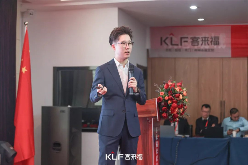 緊接著,客來福家居首席品牌官尹邵杰和大家分享“KLF客來?!?的品牌進階歷程:做品牌要堅持長期主義,“客戶是天 產(chǎn)品是命 品牌是魂”的12字方針見證了客來福的發(fā)展理念,我們需將品牌意識貫穿于日常行為準則中,為客戶品牌忠誠度的建立一起努力。