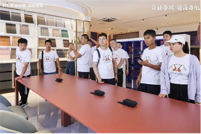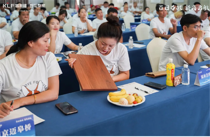 隨后,設(shè)計(jì)督導(dǎo)部主管張言發(fā)帶來實(shí)木水漆新品發(fā)布,現(xiàn)場詳細(xì)講解了新品采用的優(yōu)質(zhì)天然木皮,環(huán)保水性漆涂裝及性能升級基材等多方面內(nèi)容。未來,客來福將從差異化競爭迭代到優(yōu)異化競爭,以更出色的產(chǎn)品作為銷售保障,助力經(jīng)銷商們放心“沖鋒”,斬獲訂單。