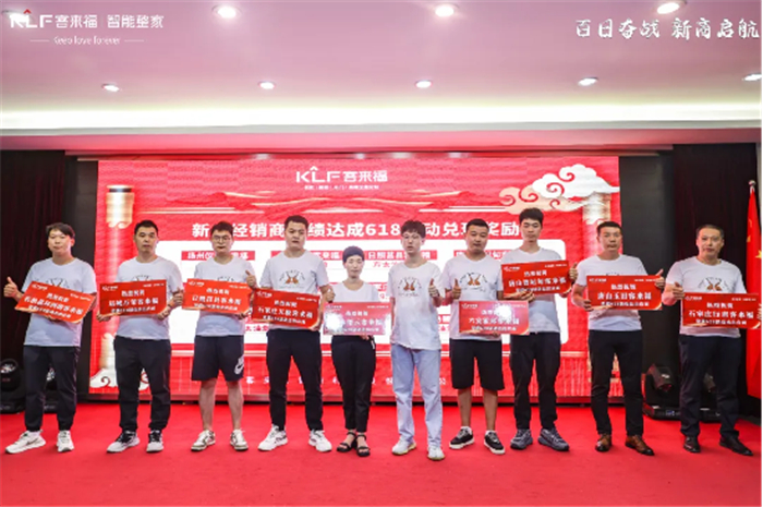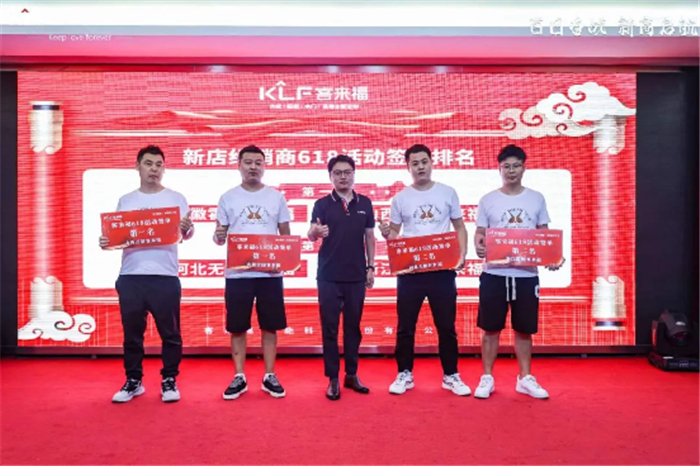 本次大會還針對618活動設(shè)置了頒獎(jiǎng)環(huán)節(jié),共十三家獲獎(jiǎng)經(jīng)銷商上臺領(lǐng)獎(jiǎng)。這是客來福對優(yōu)秀經(jīng)銷商們的感謝與回饋,希望未來能達(dá)成更加有深度的長遠(yuǎn)合作。