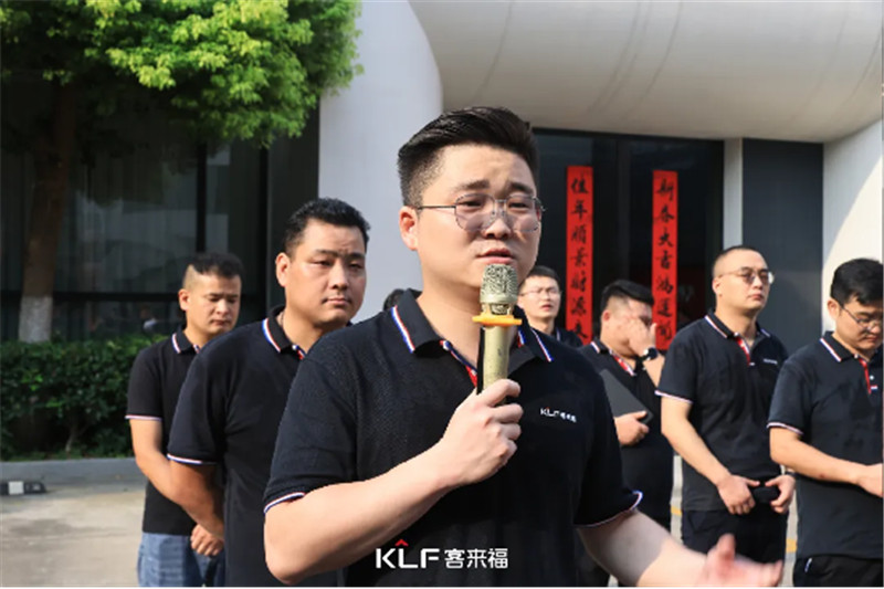 在經(jīng)過簡單的整隊后,各中心負責人匯報人員到場情況。隨后,升國旗奏國歌儀式正式拉開大會序幕。在飄揚的旗幟下,全體員工進行企業(yè)價值觀宣讀,展現(xiàn)了客來福家人們斗志昂揚的精神面貌。