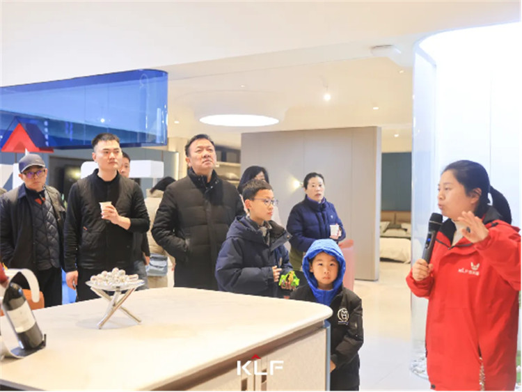 在工作人員的陪同解說下,老客戶一行開啟了展廳參觀之旅。置身人居和諧的高級場域,大家一起沉浸式體驗家居美學新境界,近距離實看實感客來福的多元化產品體系和精湛工藝,收集所有關于家的靈感。