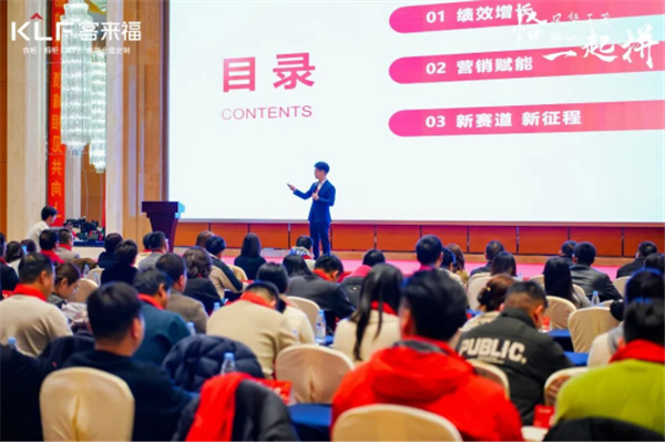晚場會議伊始,客來福零售事業(yè)部副總尹邵杰上臺做2025年?duì)I銷戰(zhàn)略規(guī)劃分享。他指出,隨著新房紅利減退、大宗渠道弱化,家居行業(yè)正進(jìn)入加速洗牌的新時代?!盁o整裝不增長”成為共識,迫使定制企業(yè)全面升級精細(xì)化服務(wù)思維,從單純的產(chǎn)品銷售轉(zhuǎn)向提供“空間解決方案”。未來,客來福要堅守以定制產(chǎn)品為核心的整裝服務(wù)模式,與上下游行業(yè)深度合作、雙向賦能,共同打造全品類交付組合拳,全力推進(jìn)大家居戰(zhàn)略落地,實(shí)現(xiàn)大家居強(qiáng)流量、促轉(zhuǎn)化、擴(kuò)單值、優(yōu)交付的絕對生態(tài)體系實(shí)力。